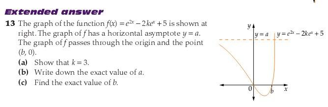 so limit x to - and as you can see if you sub in a VERY large number for x then and approach 0, so we are just left with y = 5 therefore a = 5