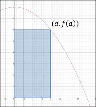 So we want the blue area to be a maximum and from the diagram we can see the width of the rectangle is 'a' and the height of the rectangle is 'f(a)':