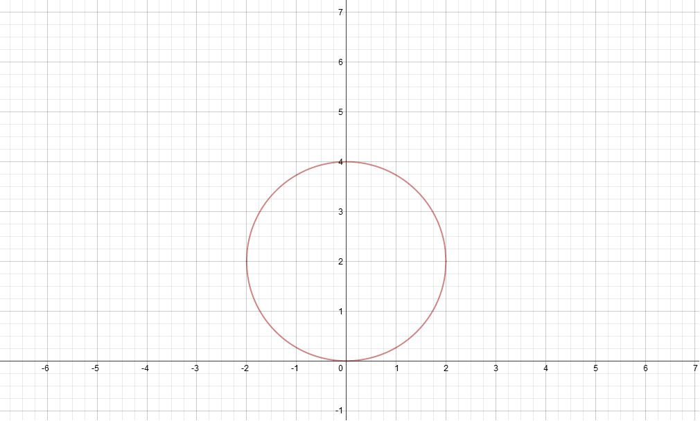 So we are looking at a circle with center (0,2) and a radius of