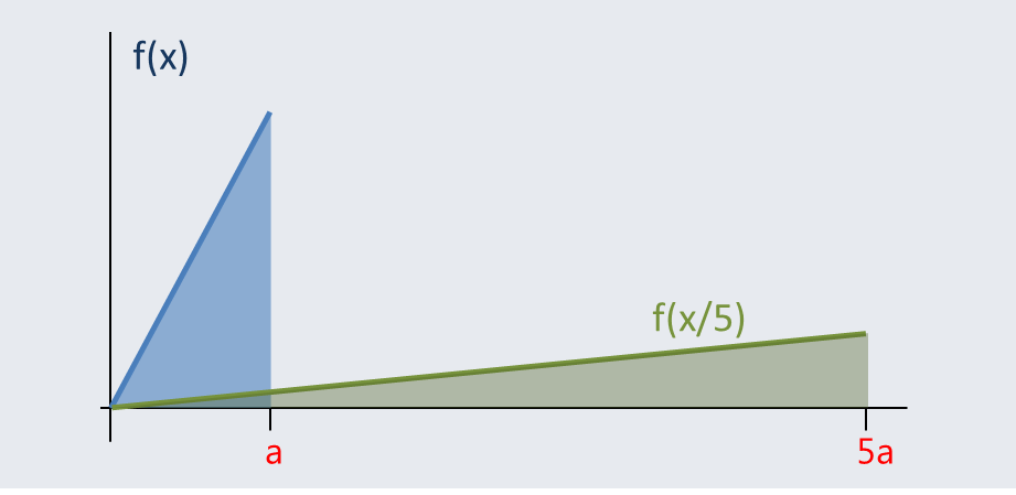Therefore the graph of f(x/5) should have the same height as the graph for f(x). That would then show an area five times greater than the original as Sushi has explained.