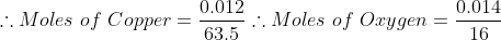 As a result we have the masses of CuxO and Cu so now we can find the weight of oxygen (0.126-0.112=0.014g)