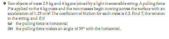 tension in the second string(one connecting the two blocks) and friction is acting opposite to Pcos35. However it's not exactly equal to it since netforce is non-zero.