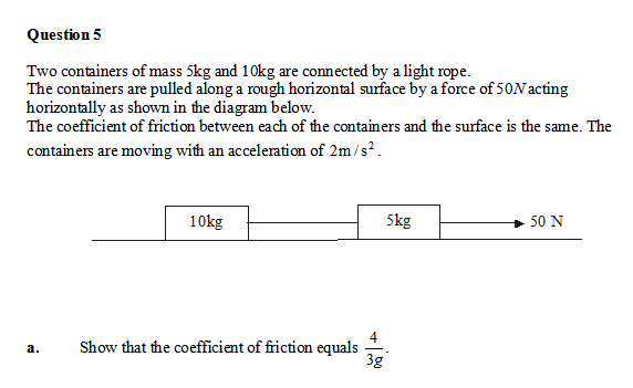 (I combined the masses to give 15kg and then combined N to give 15*g)