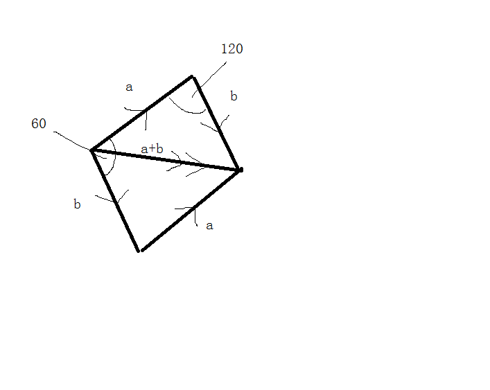 then you do (|a+b|)^2=|a|^2+|b|^2-2|a||b| cos120