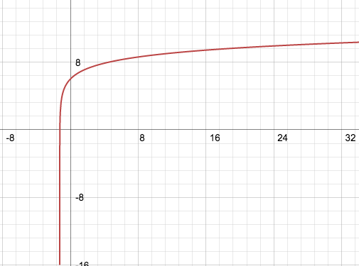 is also undefined, so evidently on the graph above, the graph will always be on the positive x-axis side.