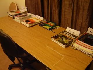 Wow. Your desk is tidy. And there's neat piles for each subject...