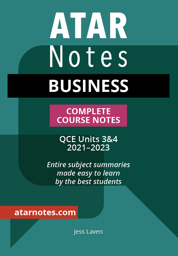 These QCE Business Units 3&4 Notes cover the entire syllabus and summarise everything you need to know for your assessments and exams. Featuring detailed case studies, sample responses, and clear explanations of every concept, this book is designed to ensure you understand the content and can apply your knowledge. Moreover, since these Notes are written by a high-scoring past student, you will also be given plenty of tips and tricks for success, including acronyms, tips for cognitive verbs, and even a sample business report to help you in structuring your own answers.